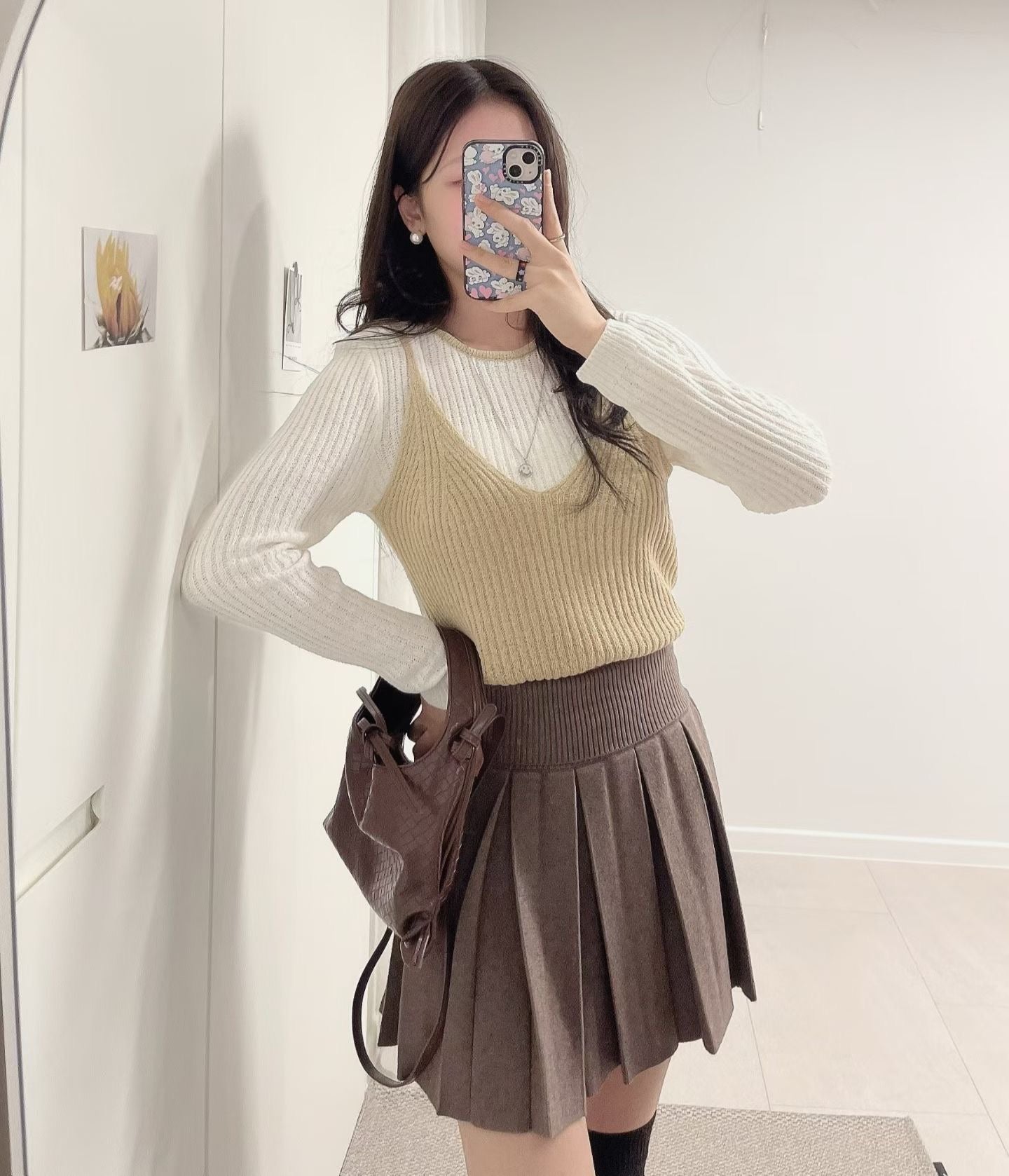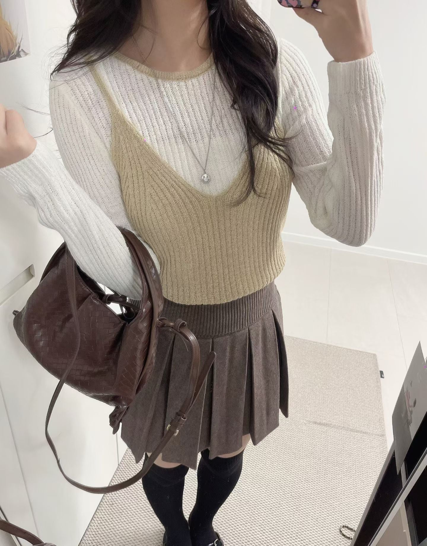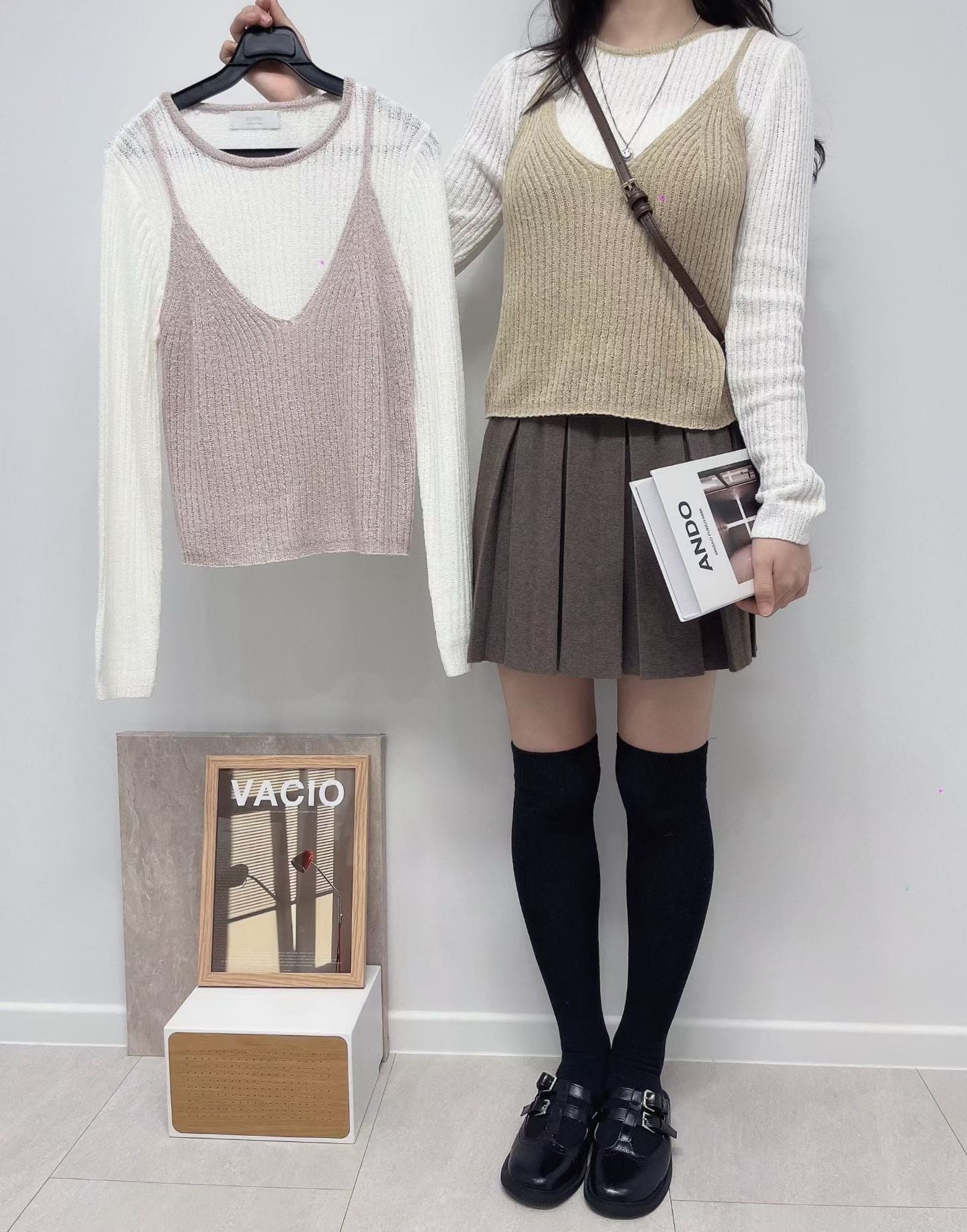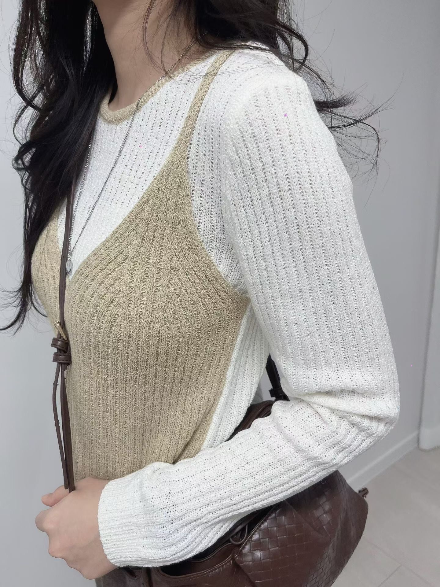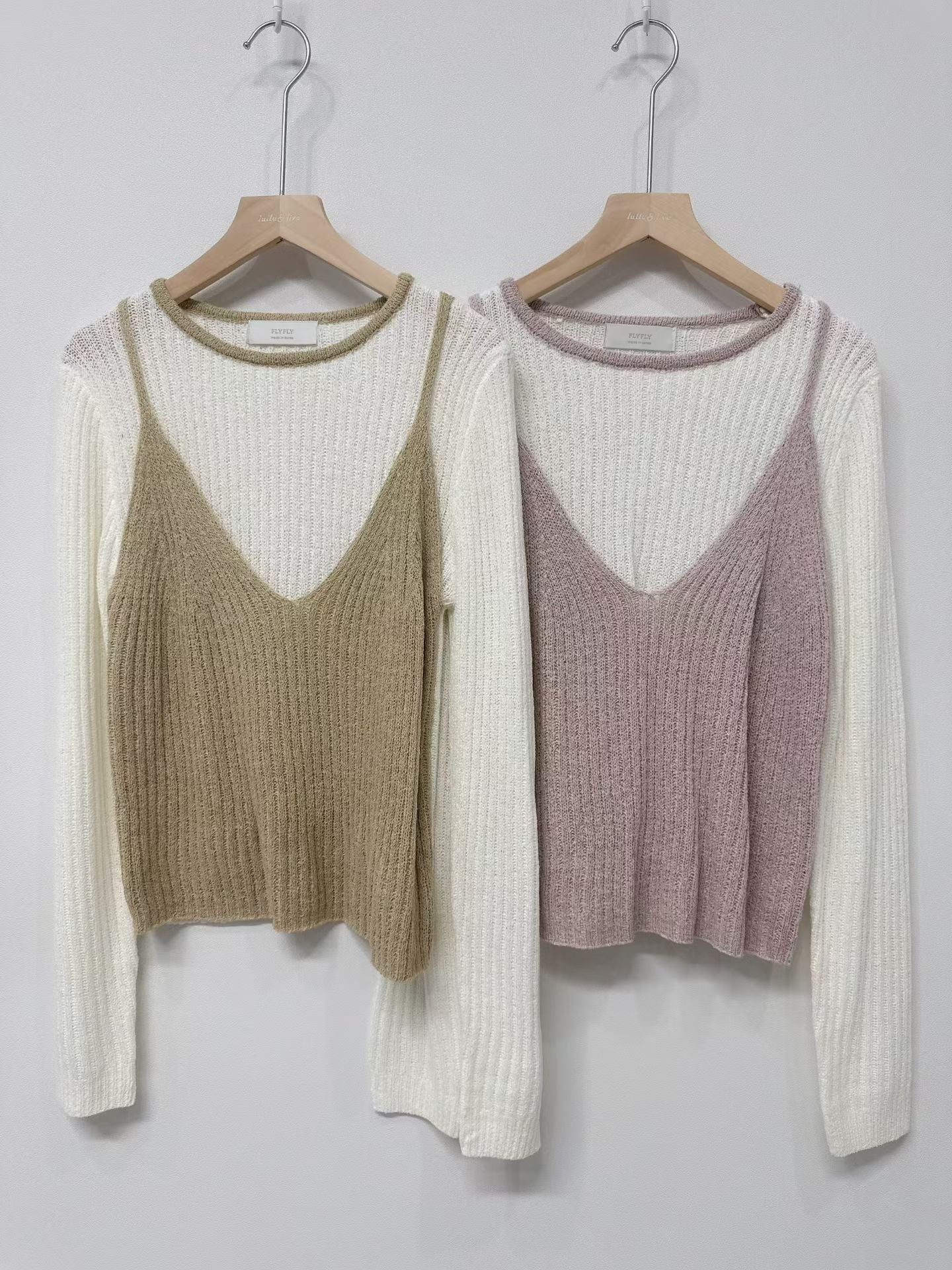 假兩件吊帶長袖上衣