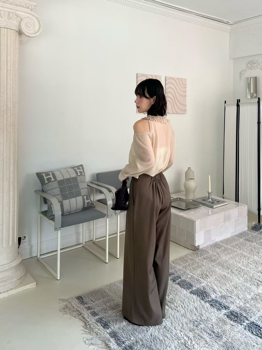 綁帶拼色西褲 (適合腰圍28寸內)