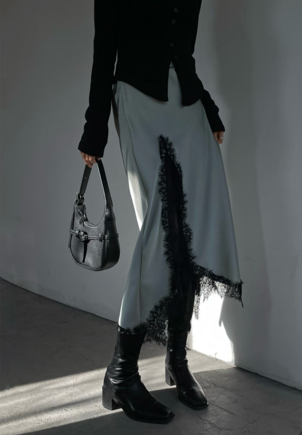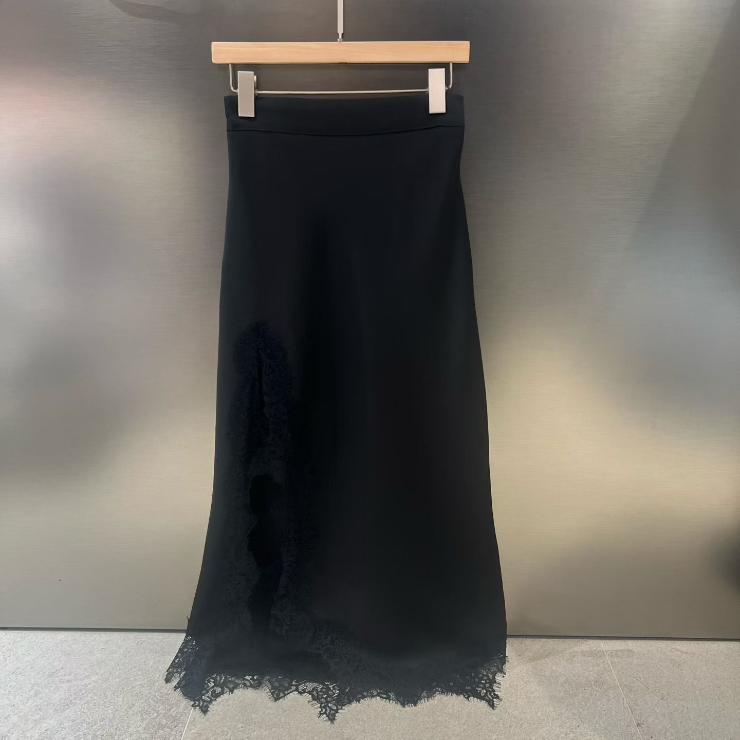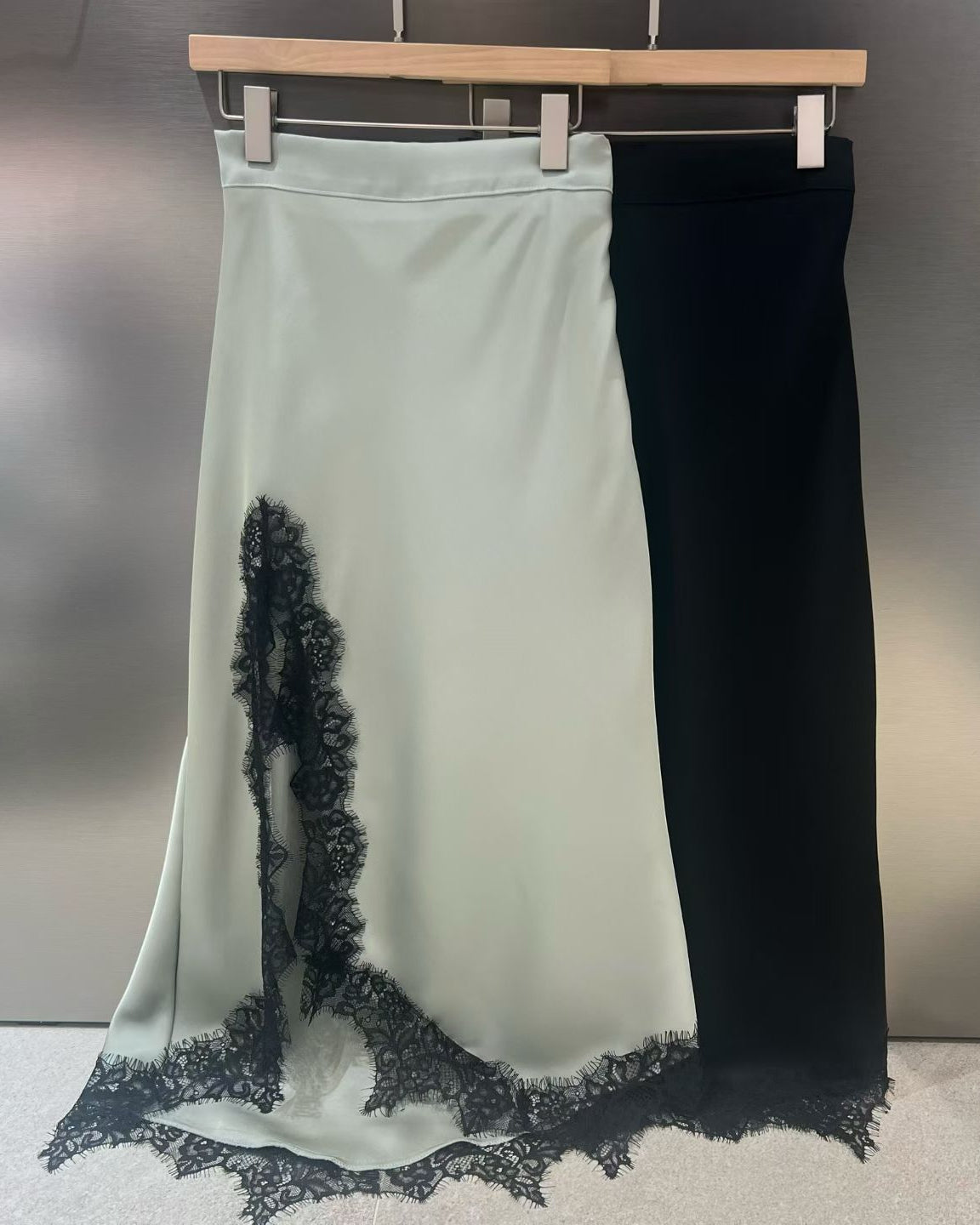 緞面光澤蕾絲開叉半身裙
