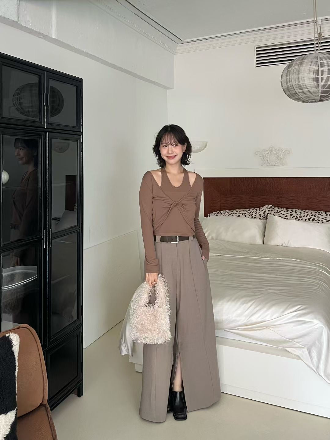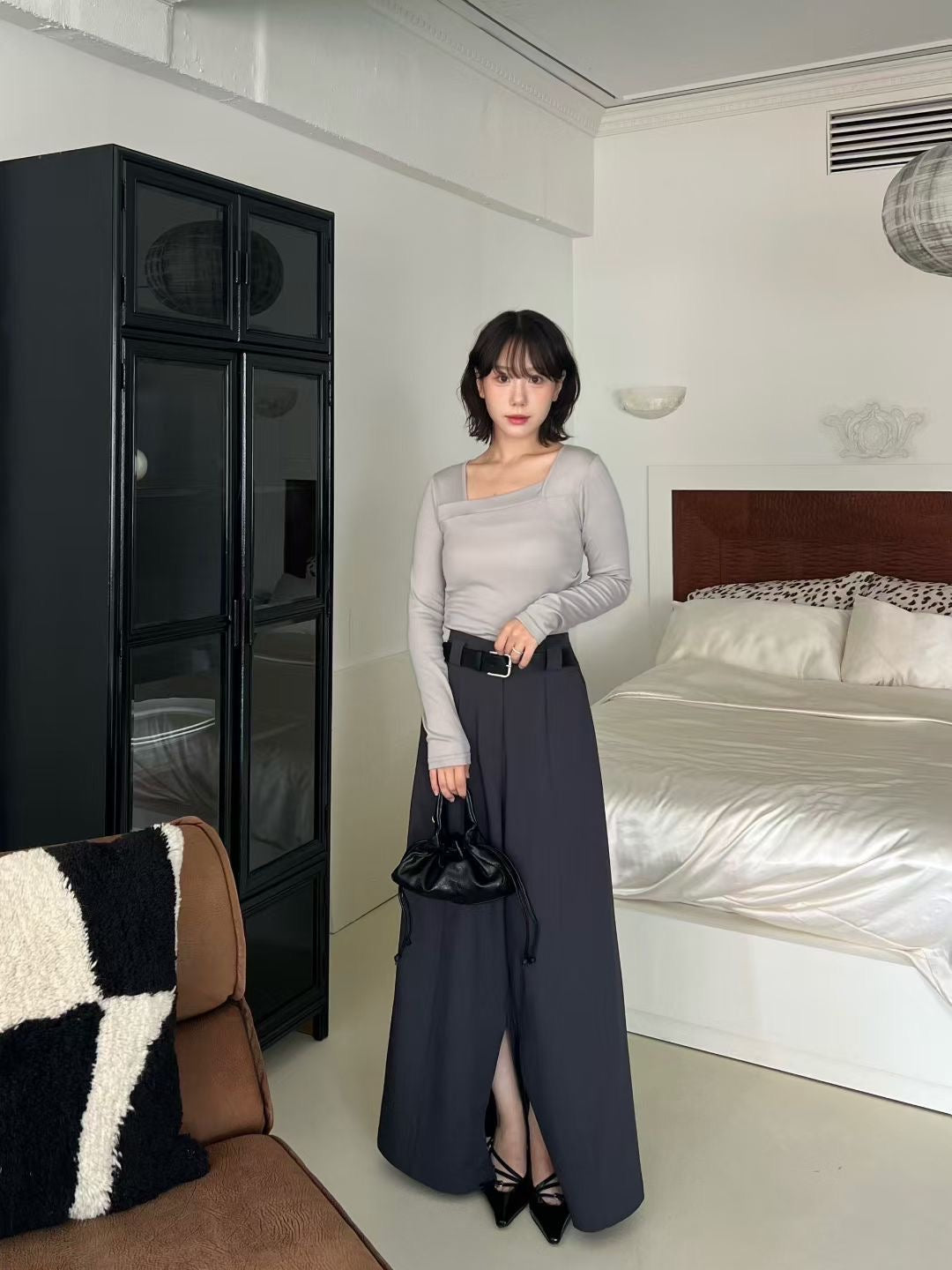 腰帶裝飾開叉西褲(適合腰圍30寸內)