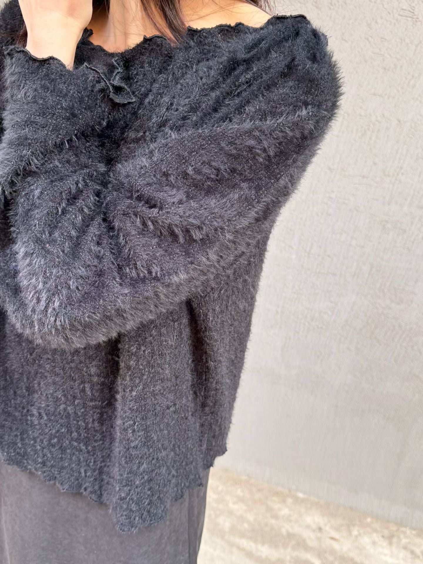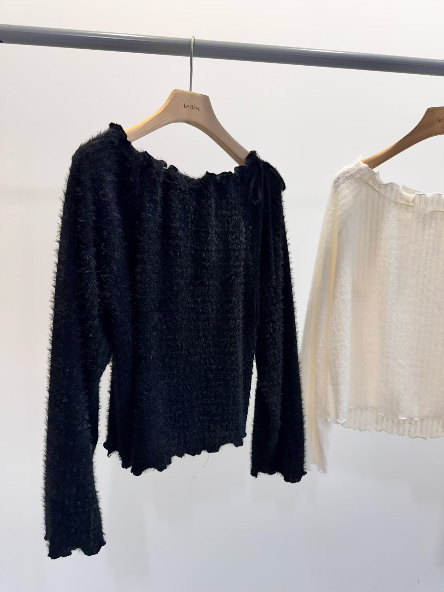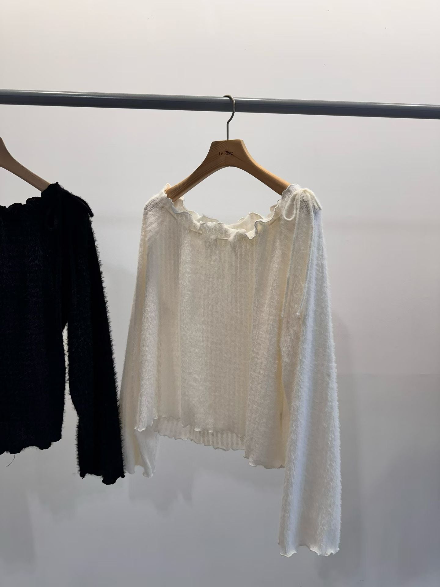 露肩滑身毛料綁帶上衣