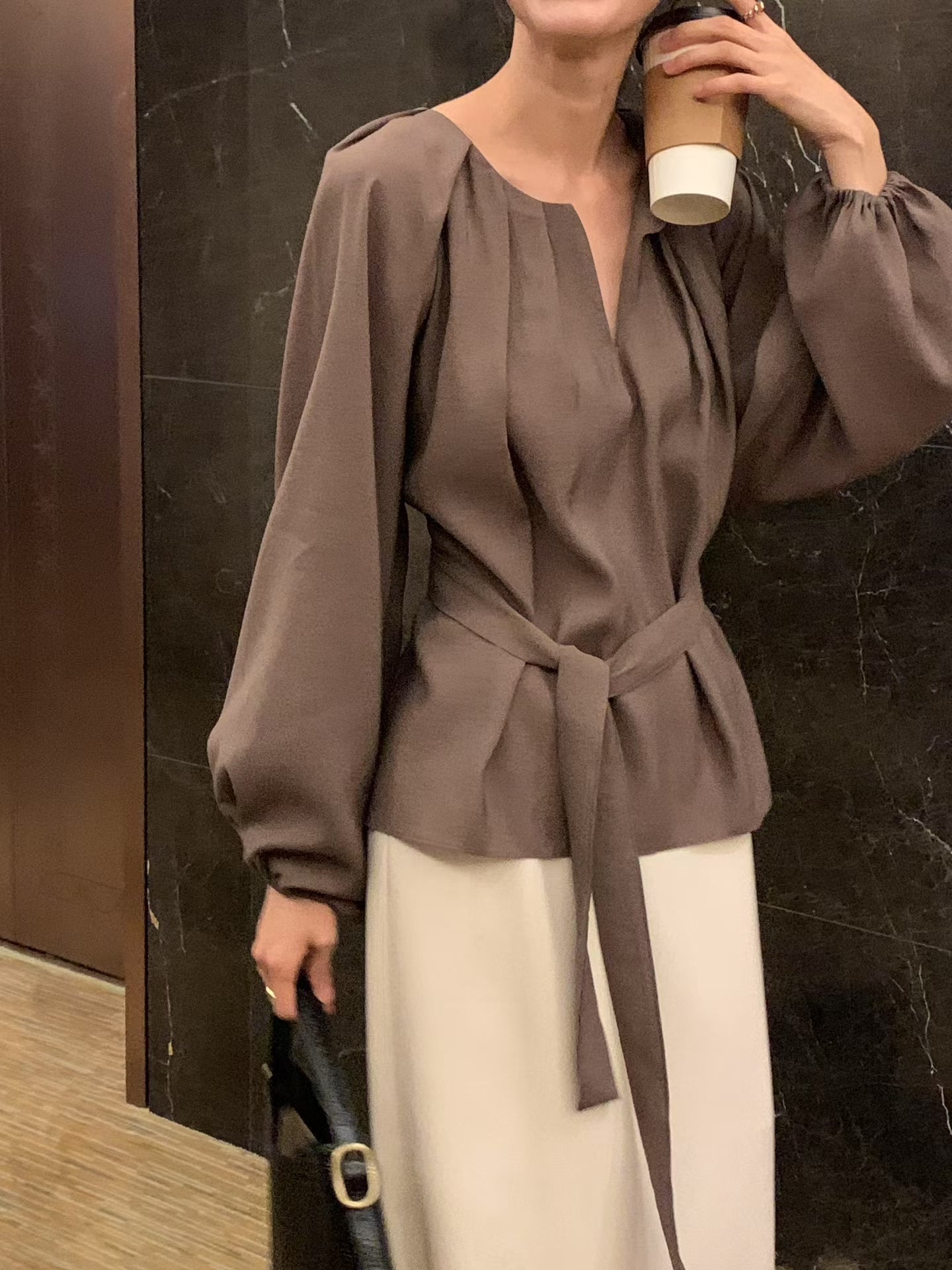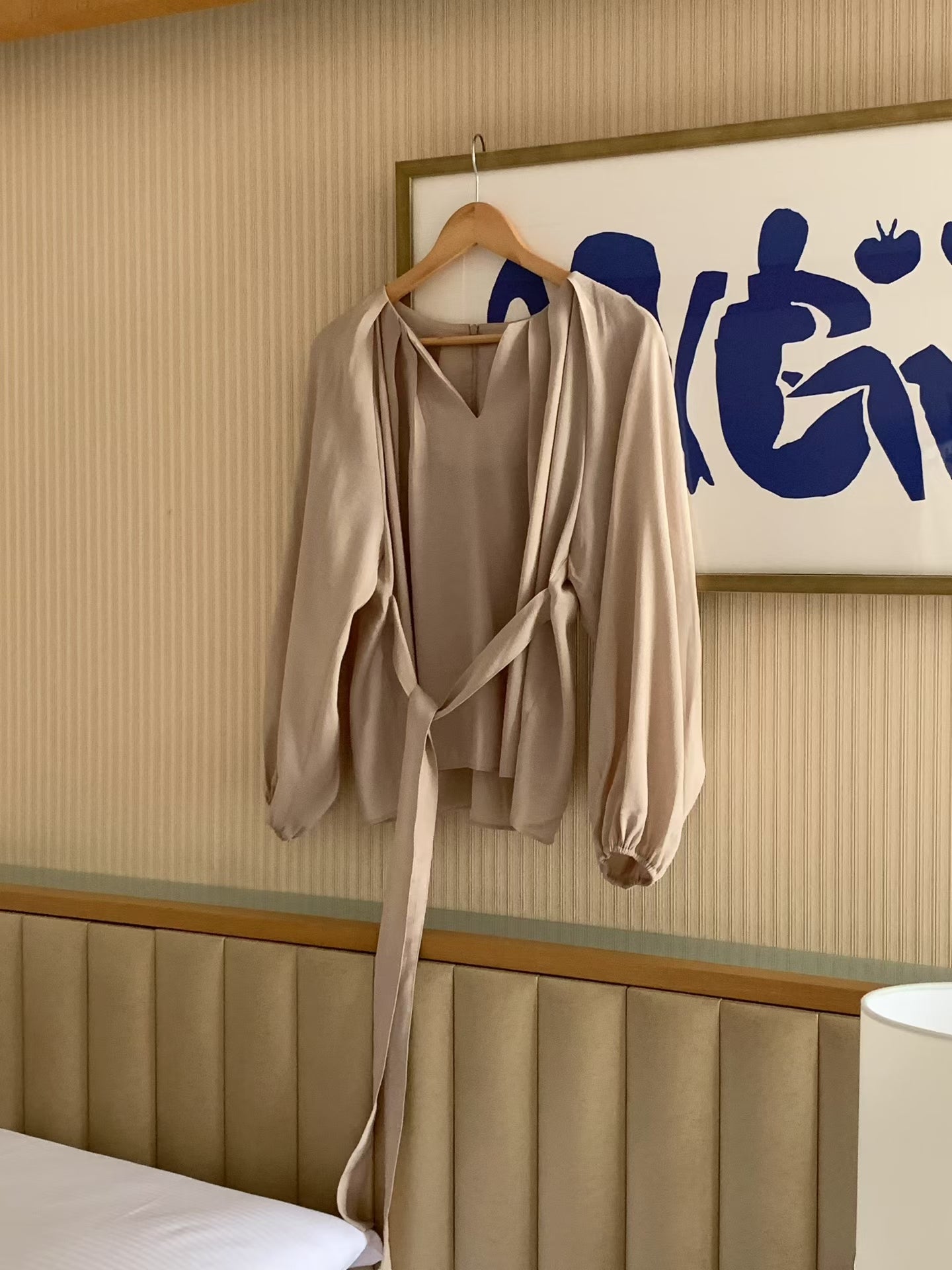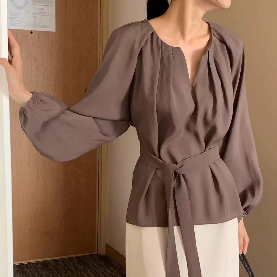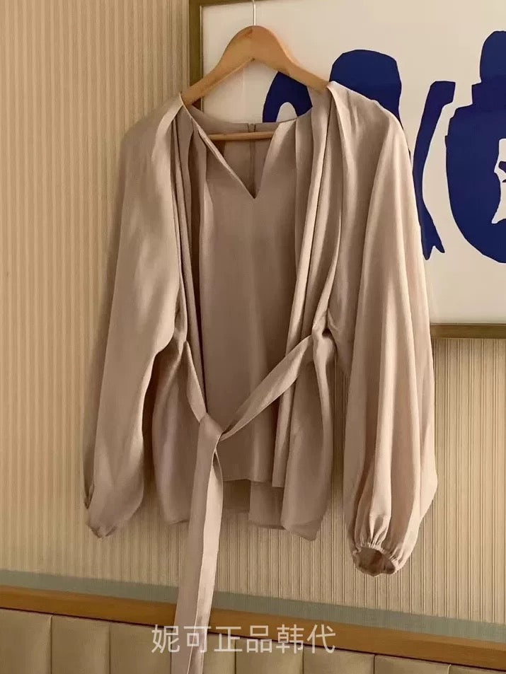 設計感v領綁帶長袖襯衫
