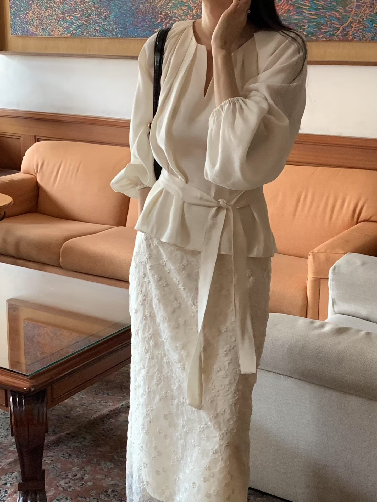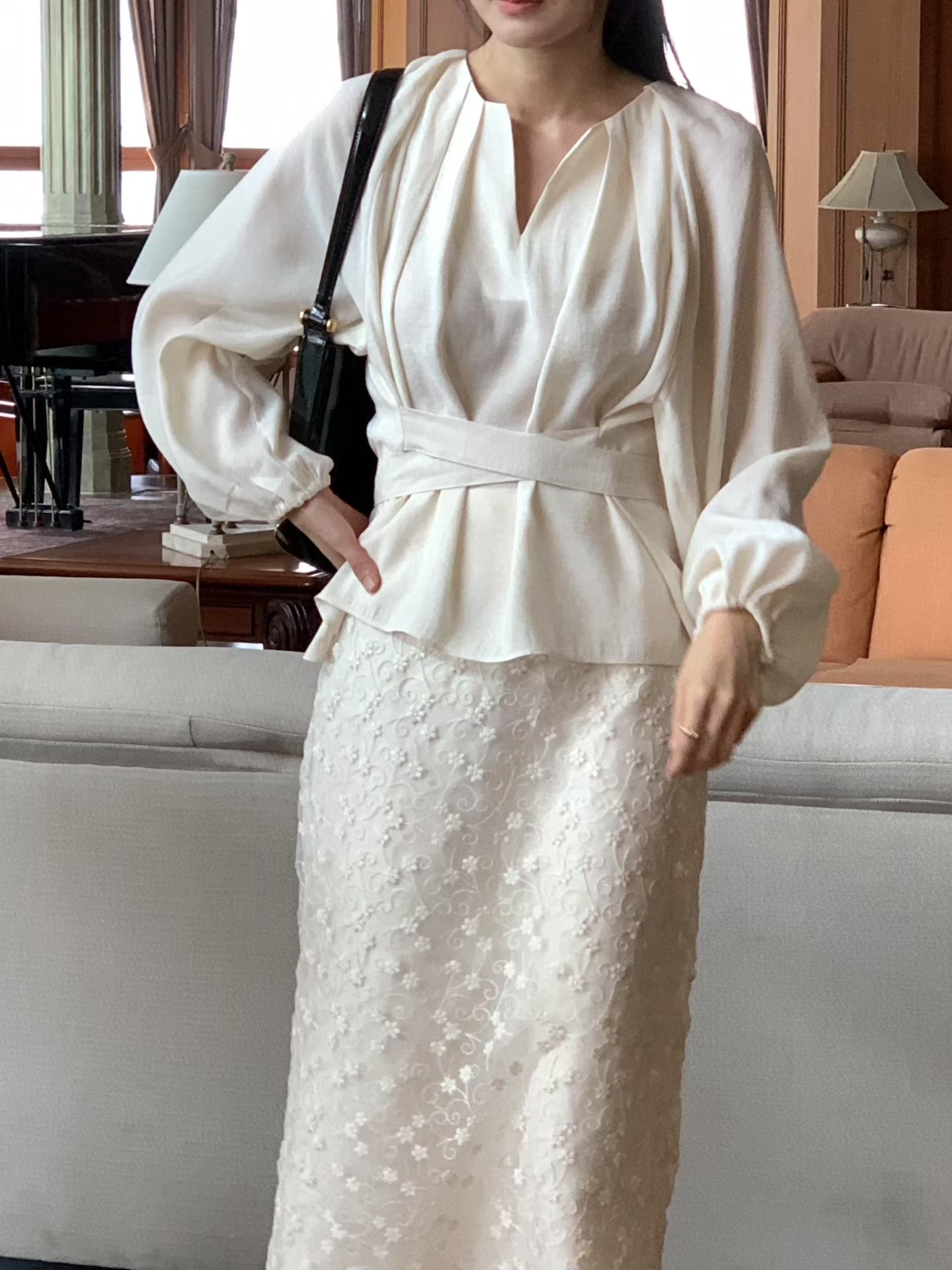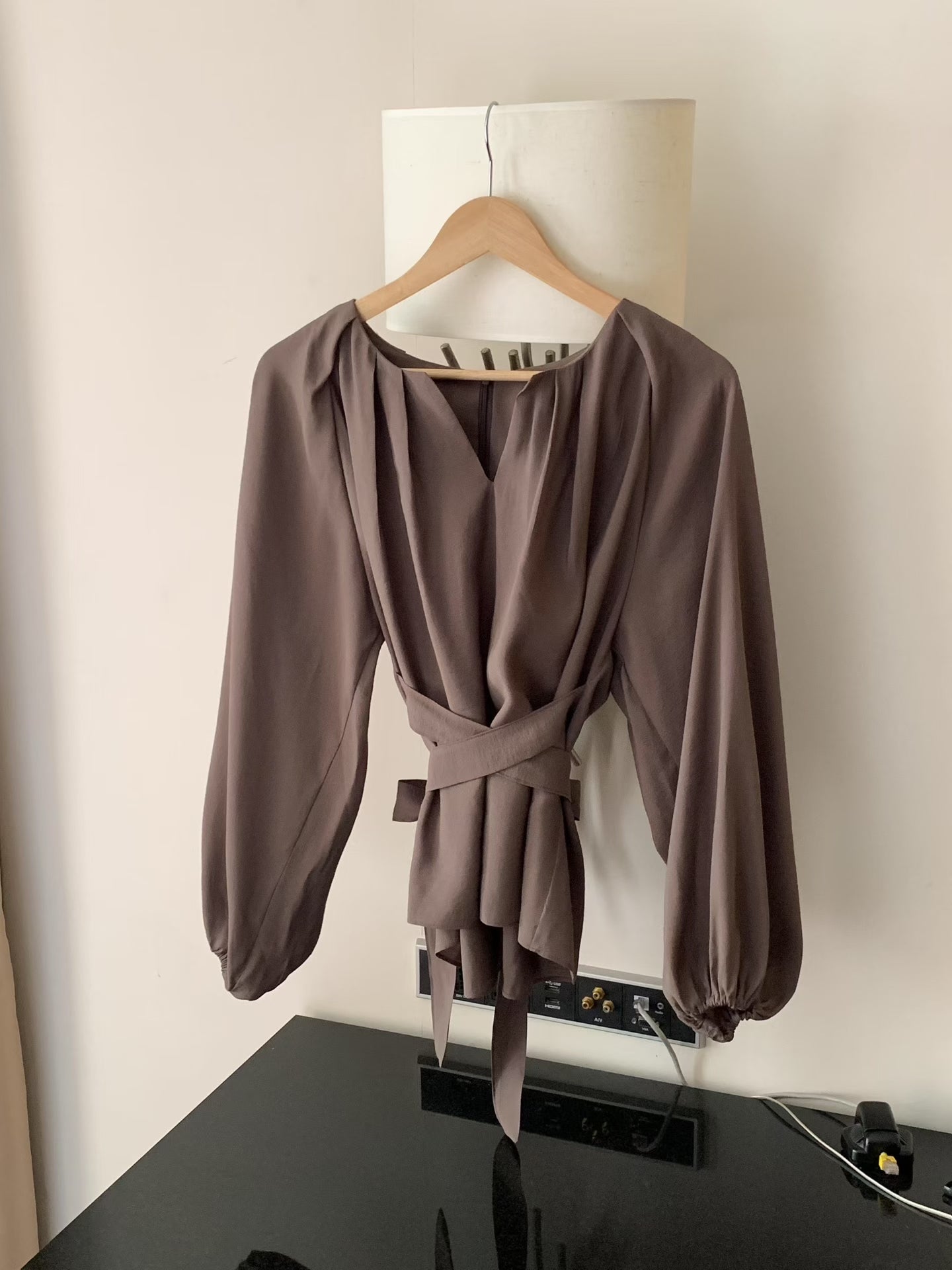 設計感v領綁帶長袖襯衫